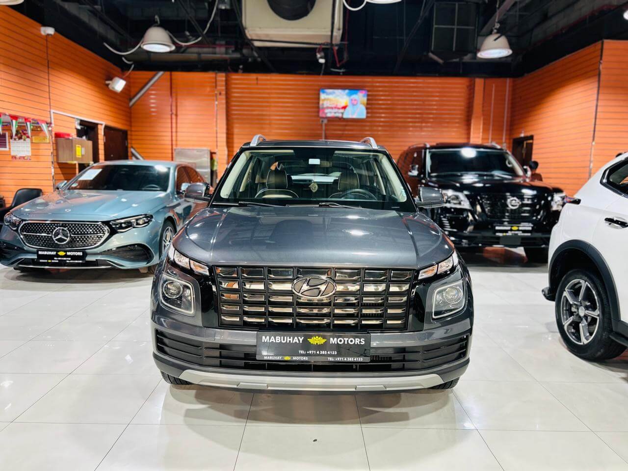 Pre-owned Hyundai Venue GDi sale in Dubai. Gray 2023 model, available at Mabuhay Motors Used Cars. This car has automatic transmission, 3 cylinders, 16 wheels and Black interior 55,000 kms SUV.