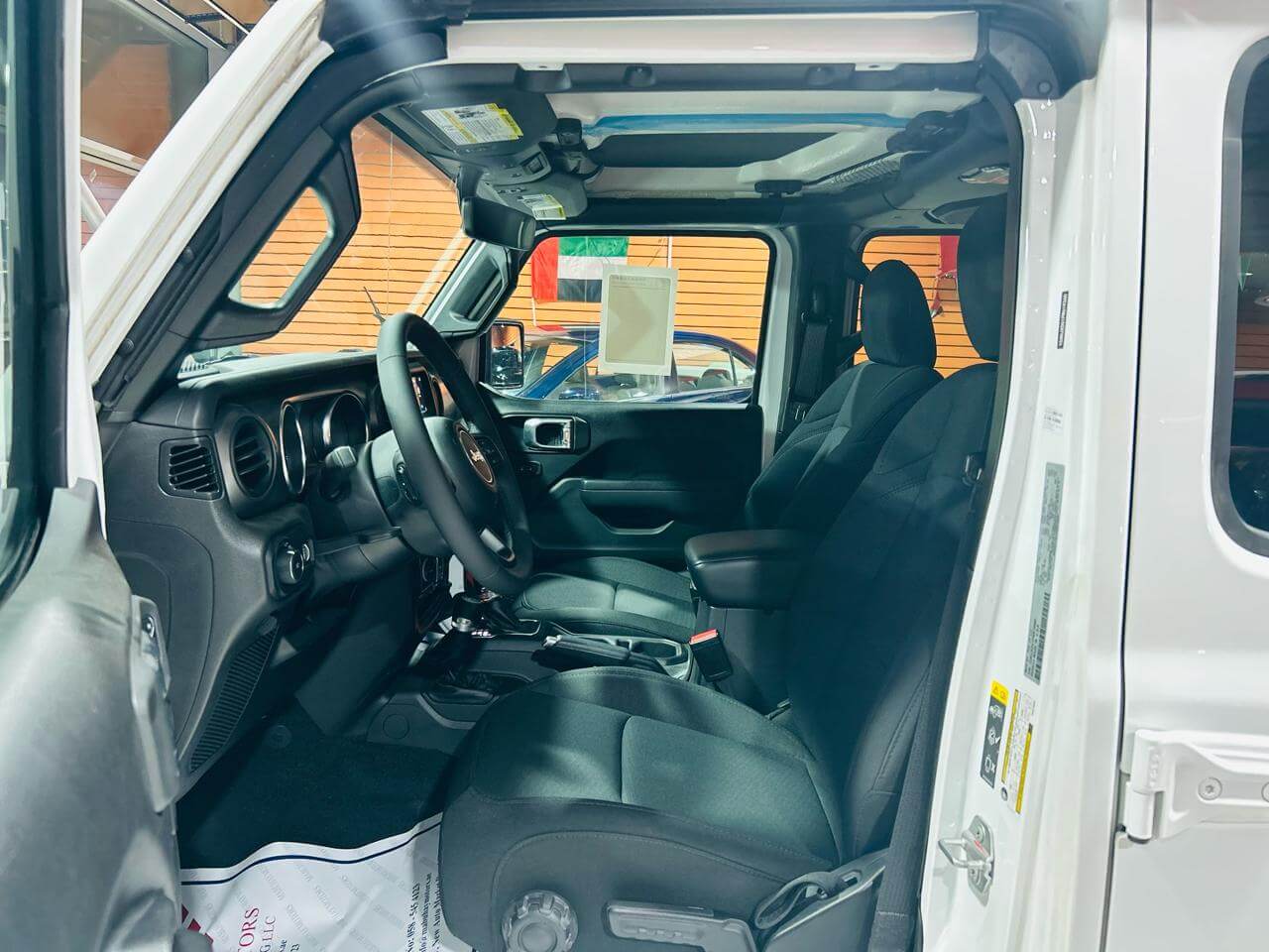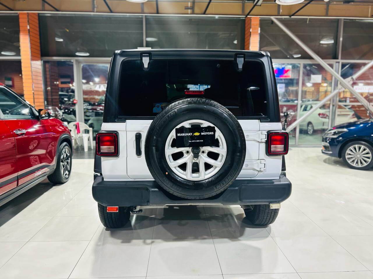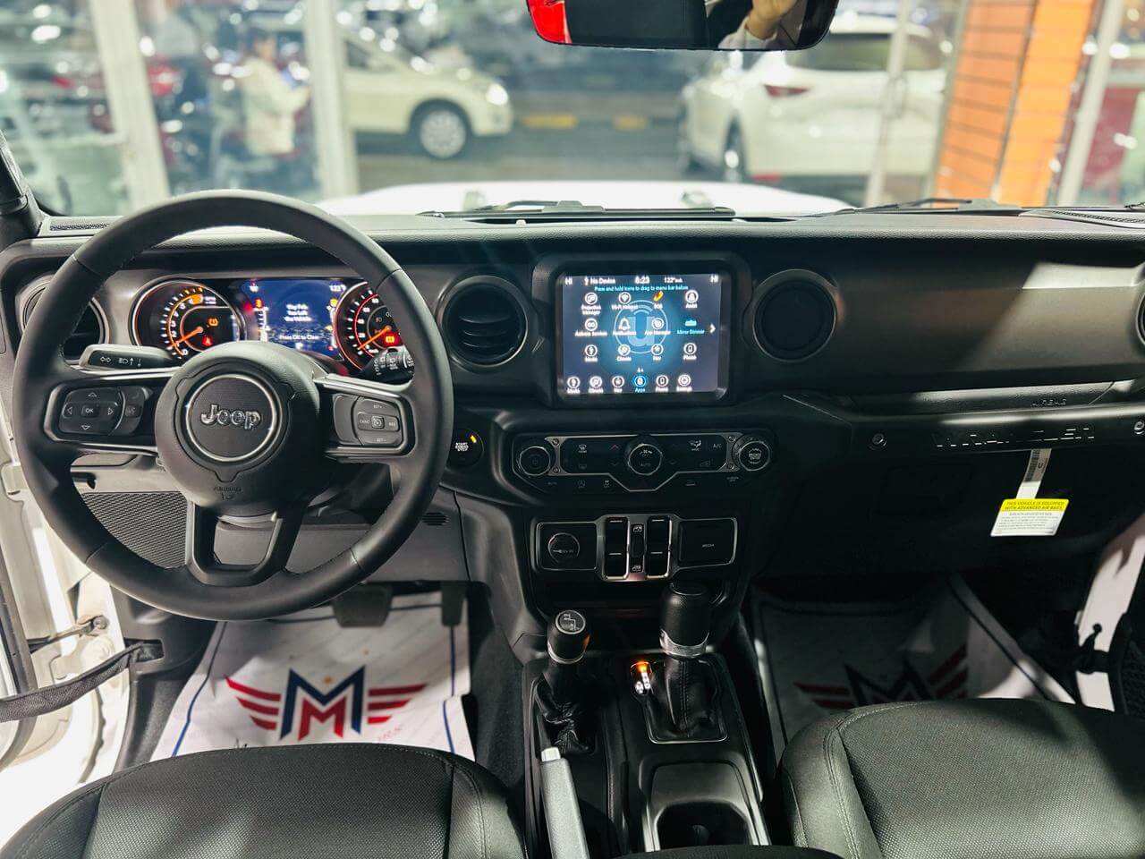 Jeep Wrangler sale in Dubai. White 2023 model, available at Mabuhay Motors Used Cars. This car has automatic transmission, 6 cylinders, 18 wheels and Black interior 0 Mil SUV.