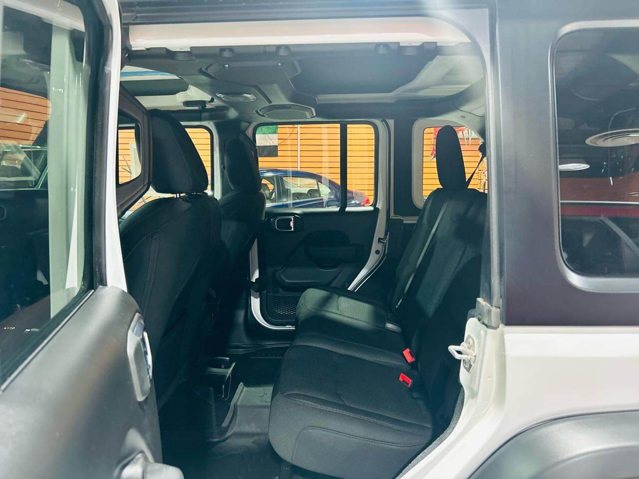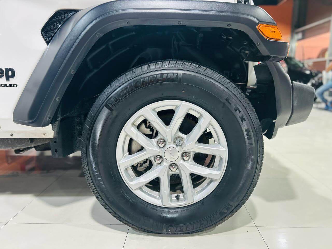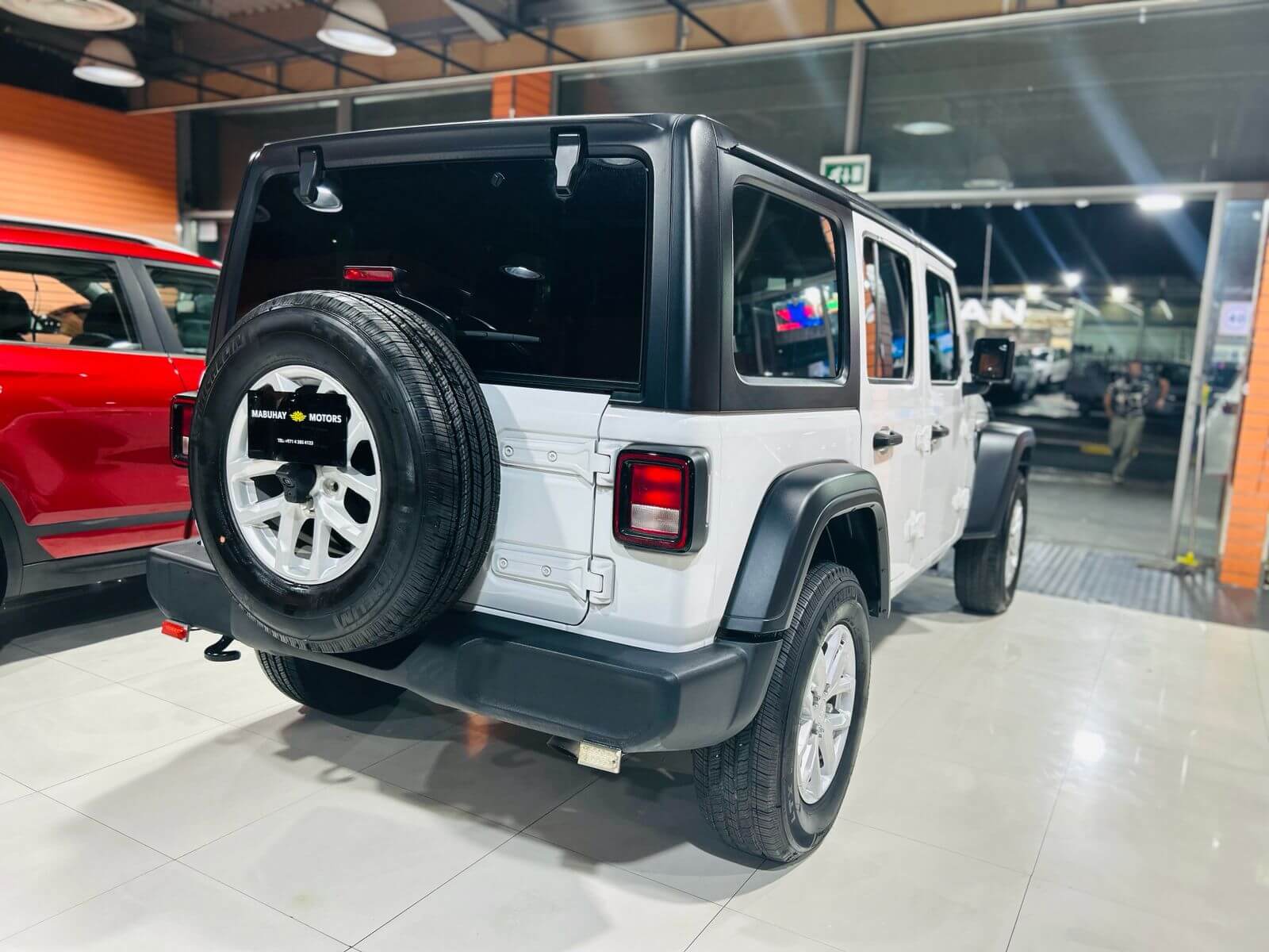 Jeep Wrangler sale in Dubai. White 2023 model, available at Mabuhay Motors Used Cars. This car has automatic transmission, 6 cylinders, 18 wheels and Black interior 0 Mil SUV.