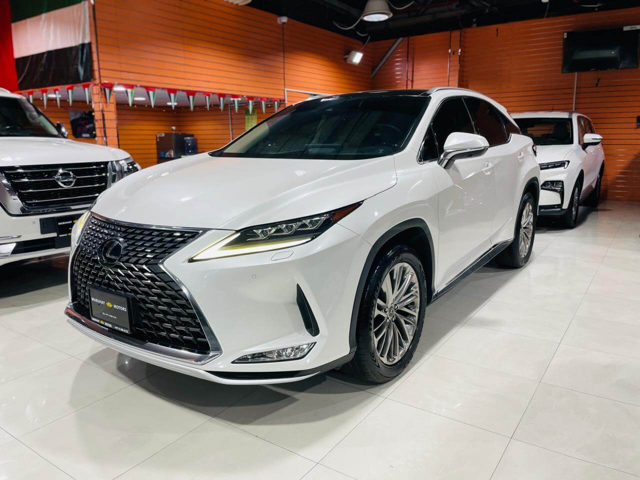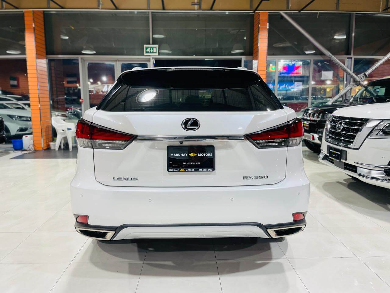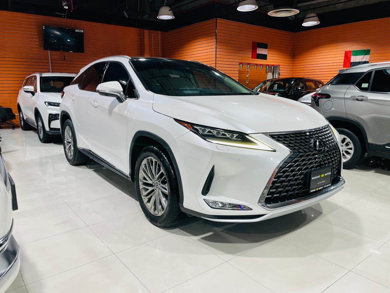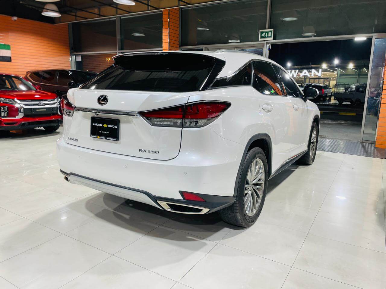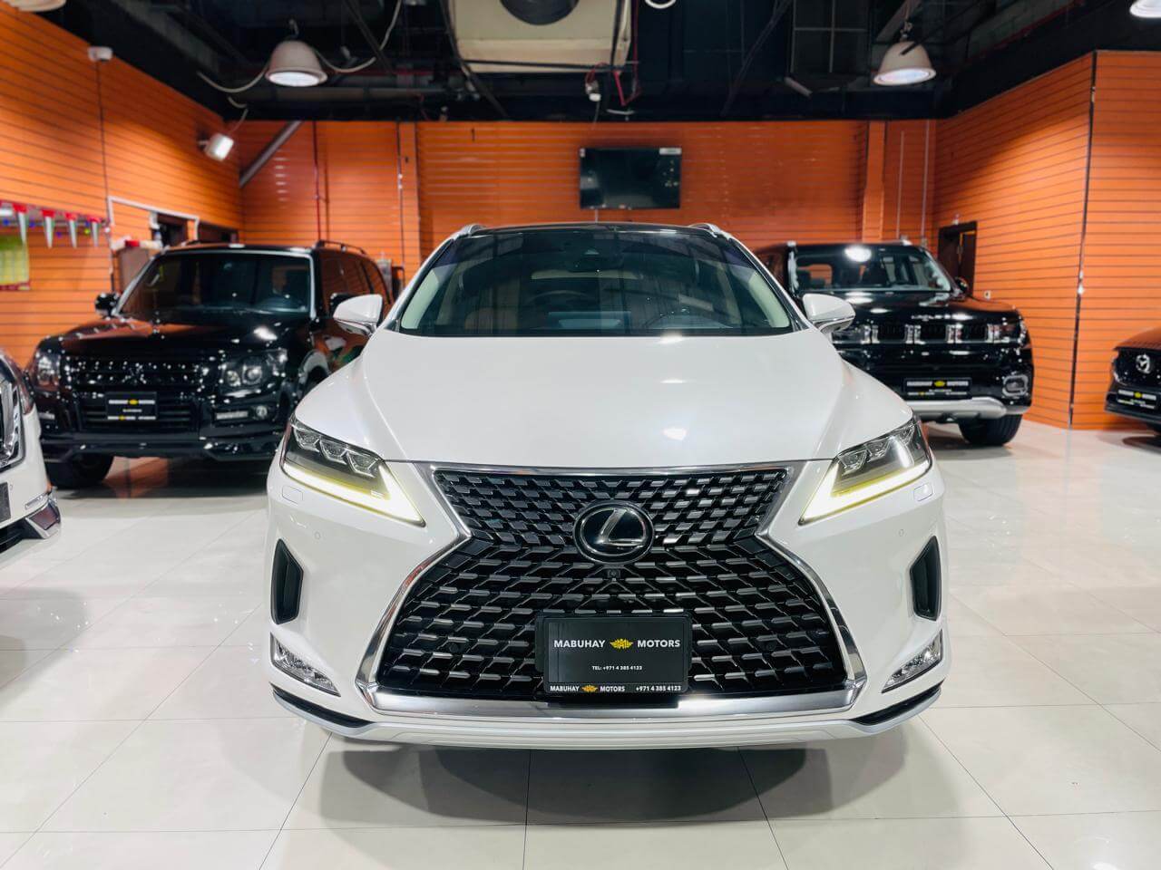 Pre-owned Lexus Rx350 for sale in Dubai. White 2020 model, available at Mabuhay Motors Used Cars. This car has automatic transmission, 6 cylinders, 20″ wheels and Brown interior 124,000 km SUV